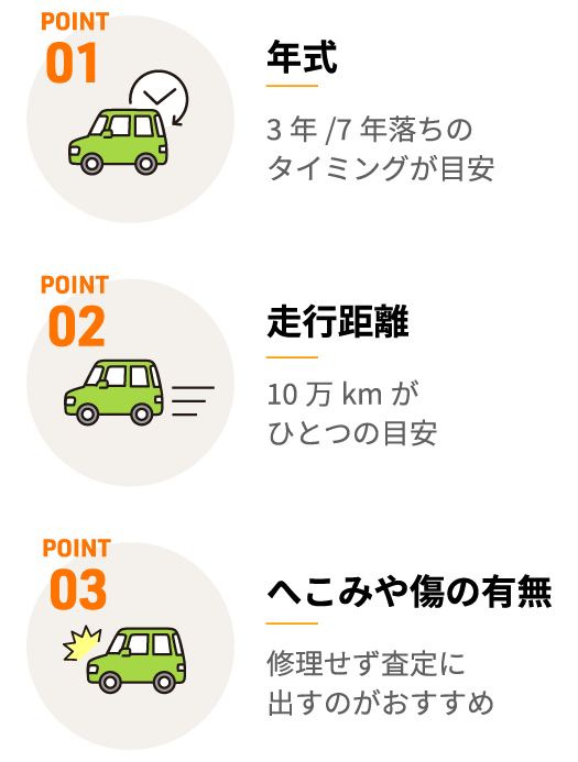 車の売却金額には、年式や走行距離が影響するため、売りたいと思ったら少しでも早く査定を依頼するのがおすすめです。